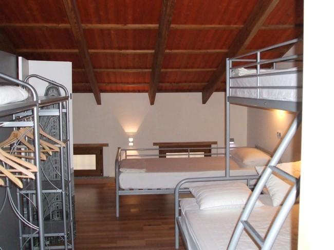 Disponemos de una habitación compartida (50 m2 aprox.) para un máximo de 8-10 personas, dividida en 2 estancias de 4 personas cada una. En cada estancia hay 1 cama de matrimonio (140 x 200 cm.) y 2 camas individuales (90 x 200 cm.). Existe la posibilidad de ampliar su capacidad con 1 cama supletoria individual o con 1 cama de matrimonio.